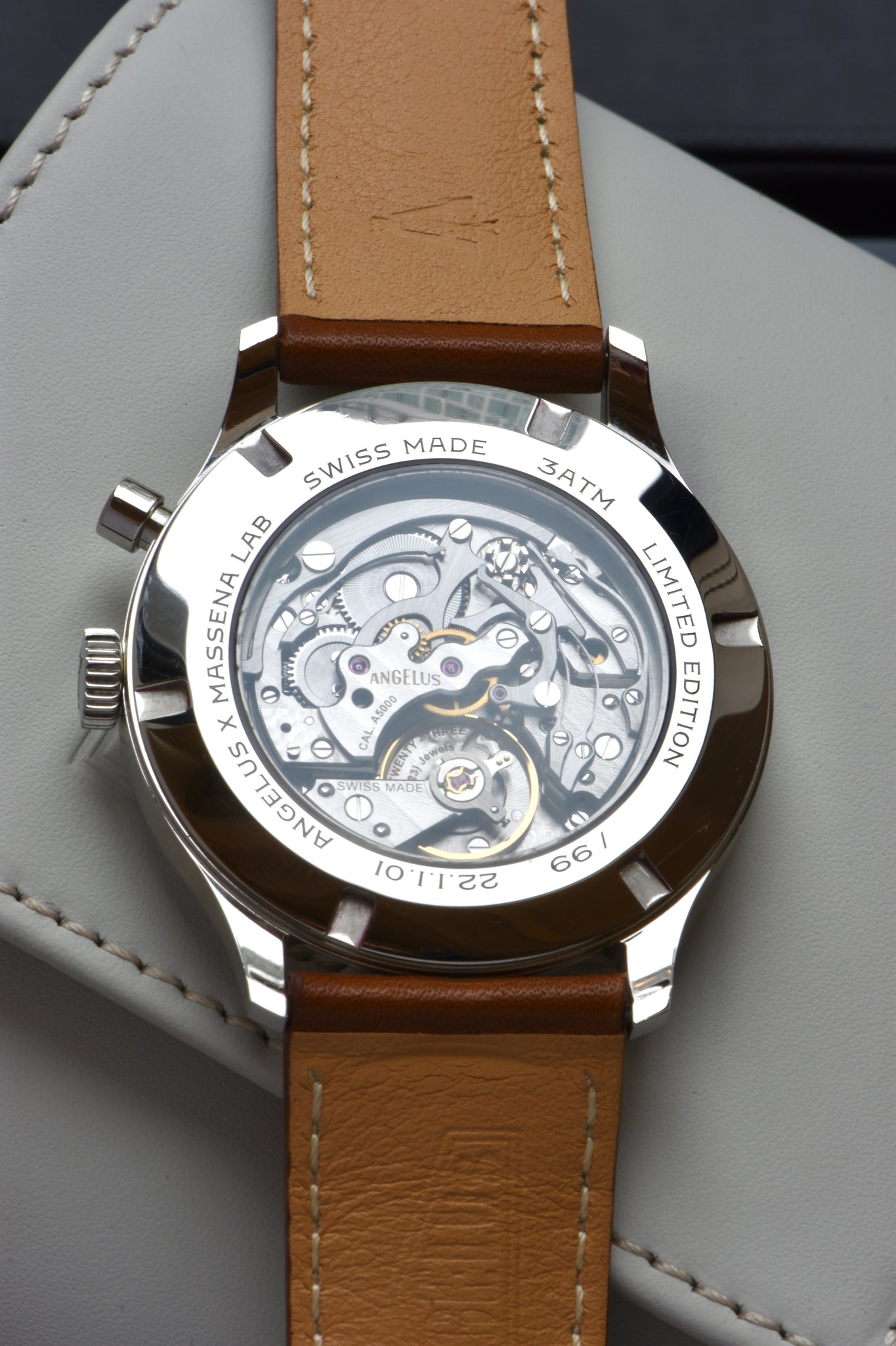 The present watch is a limited edition collaboration with Massena LAB and is revival of the watchmaker’s doctors’ chronographs dating to the 1960s.